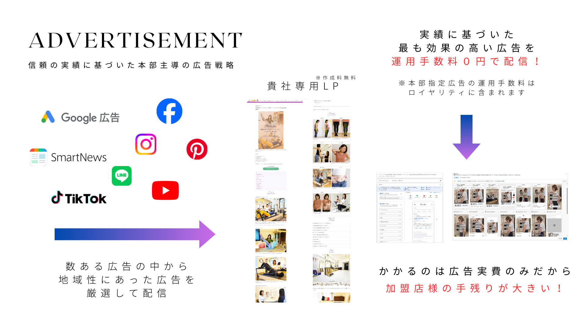 さらに広告運用手数料はロイヤリティ内だから無料!
